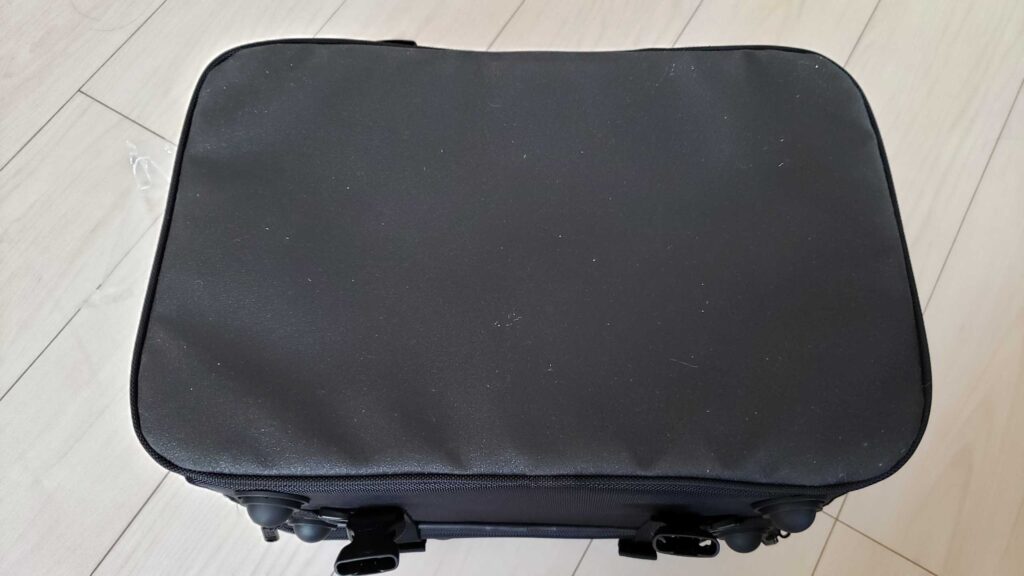 トップの蓋はカーボン柄。表面は光沢で良い感じですが、印刷のカーボン柄であり本物ではないのでガンガン物が当たれば傷だらけになるのでそこは要注意。(本物カーボンであれば傷がつかないわけではありませんが)