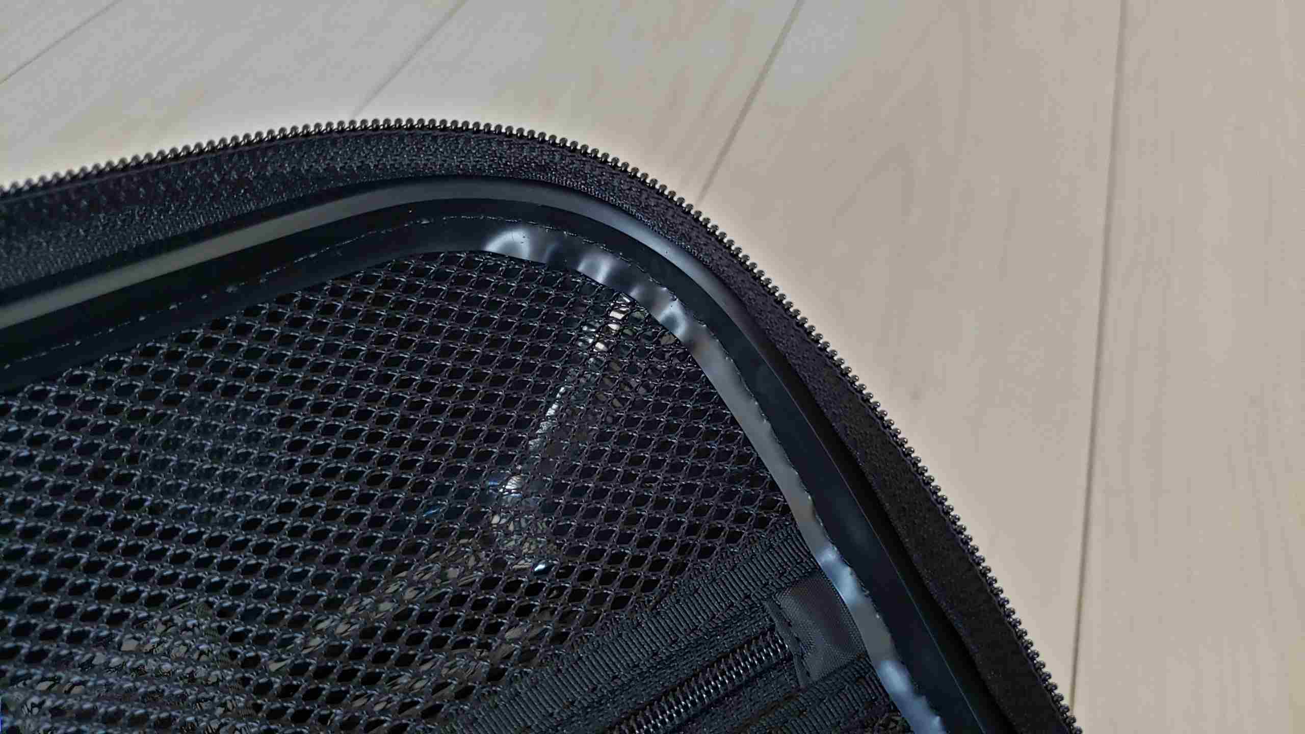 蓋の裏にはメッシュのジッパー付き仕切りがあり、蓋の裏を効率的に使えるのはとても便利です