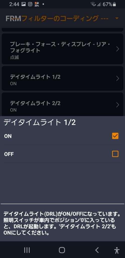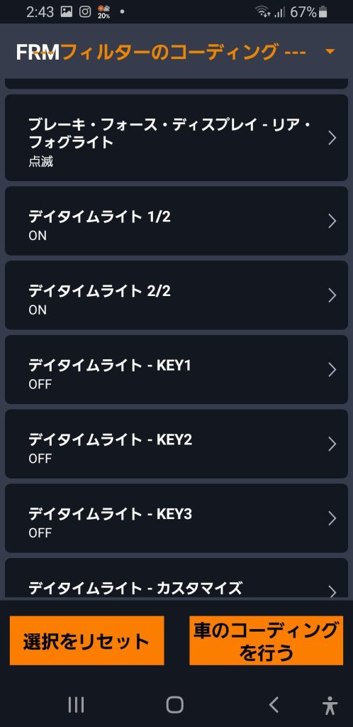 それはさておき、前回はコーディングアプリのCarlyでデイライトがOFFにできなくてコーディングを初期化しその工賃を支払うと言う失態を犯したので今回は事前にディライトをOFFにしてからディーラーに持っていきました。