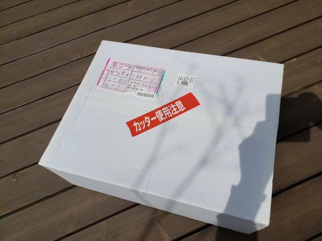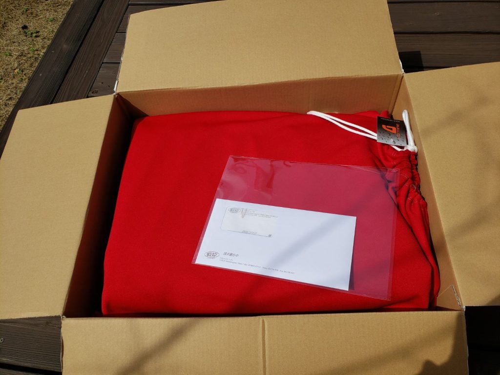 イメージカラーである赤の保存袋に入って梱包されたものが到着する。親切にダンボールを開封する時はカッター注意!の貼り紙が。