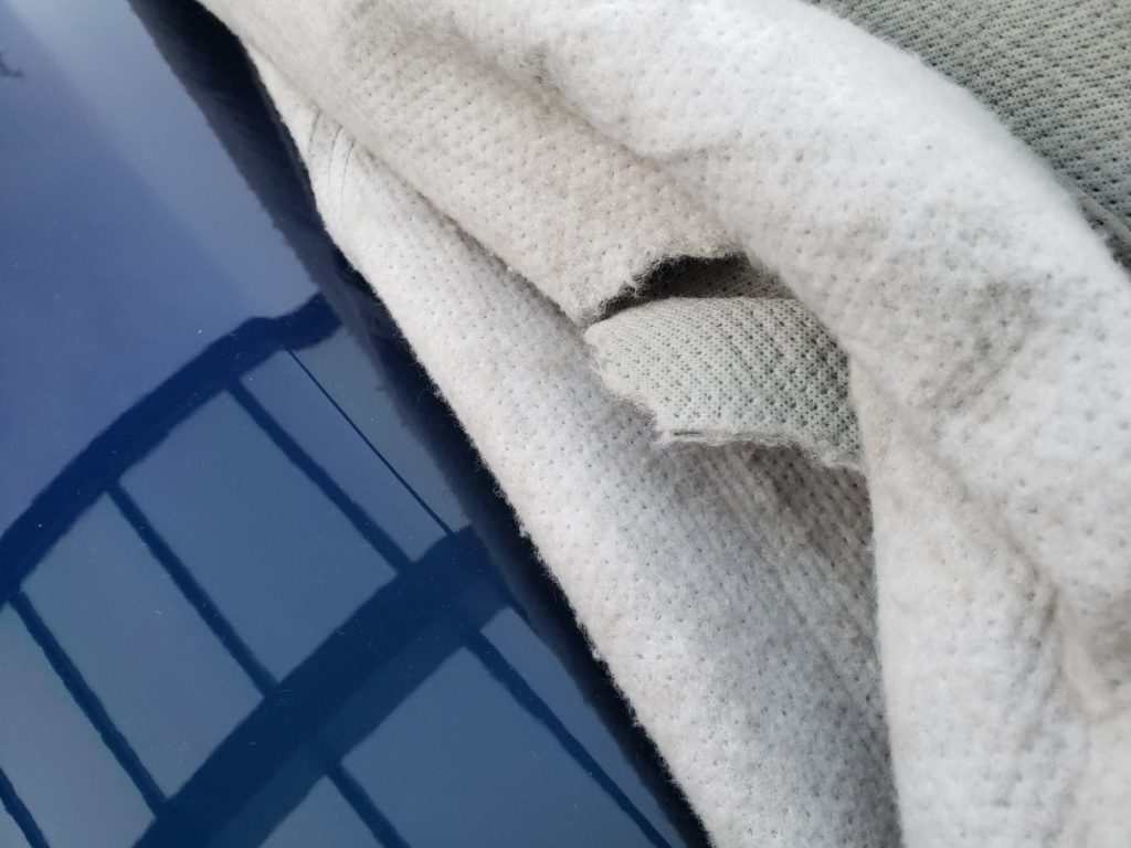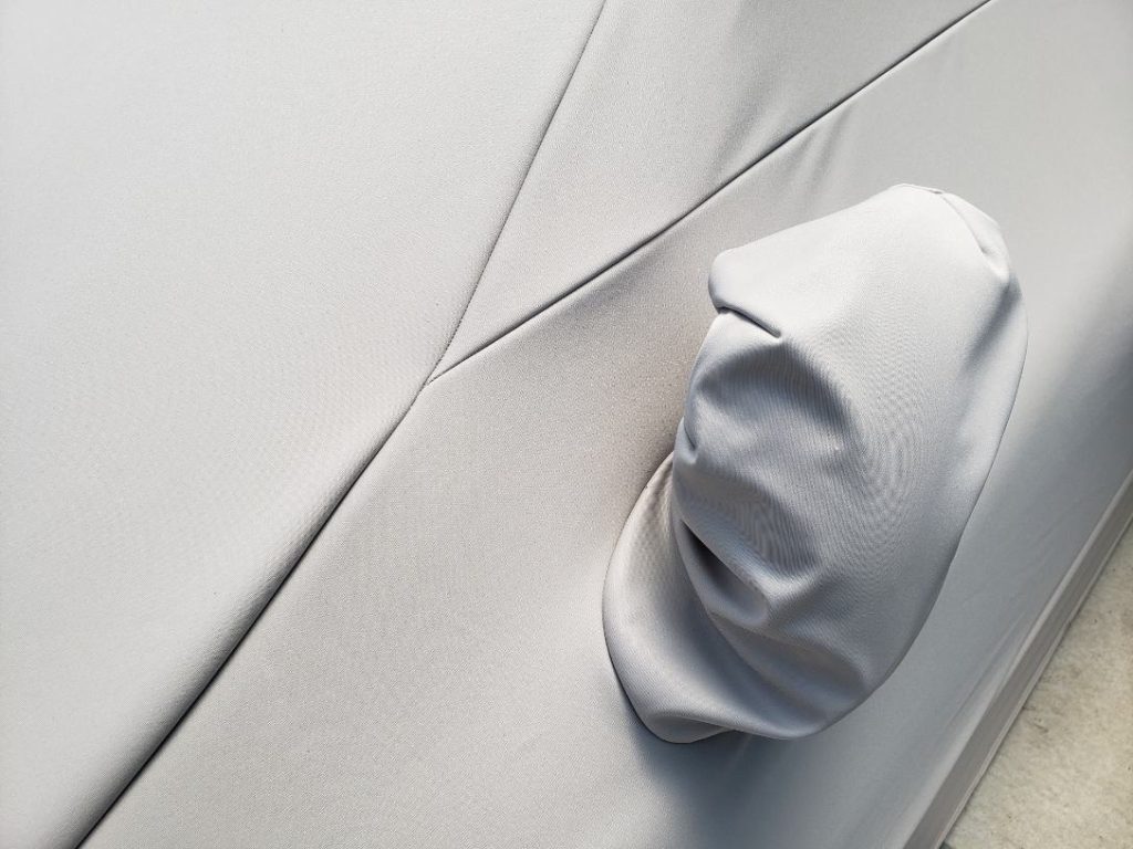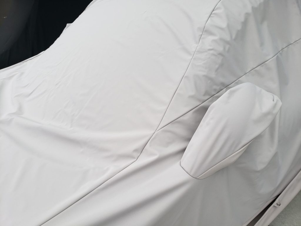 確かに起毛の方が塗装面の攻撃性は少ないのはそうだろう。ただしカーマインユーザーのほとんどは何らかのコーティングかプロテクションフィルムをされている方がほとんどなのではないだろうか。それにこれだけジャストフィットしていると生地が動き擦れる事はほとんど無いし、この生地の風合いであればノンコーティング車でも問題なさそうだ。