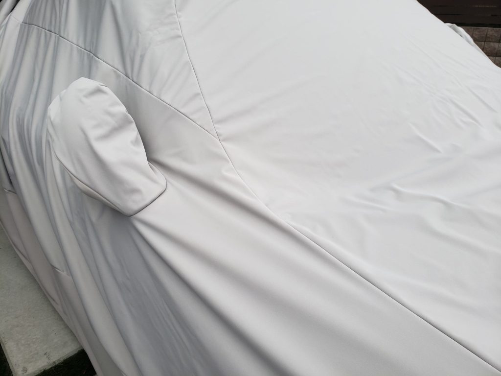 保管はカーポートの下で横からの雨の吹き込みが滅多に無い状態であったこともこの年数持ったものと思われる。使用して解った事だが車に密着している状態であることが長持ちした理由だ。同時期に購入したミニのカバーはフェンダーミラーがボンネットとの間に空間を作り、結果カバーと車との間に隙間ができてしまい直ぐにモケモケになった。生地にストレスがかかるのが寿命を縮める様だ