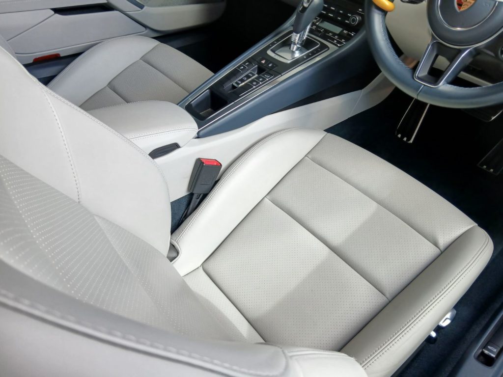 レザーと言えど車に使用されているナッパレザーは塗装されているものがほとんどである。革用の塗装なので簡単に剥げるわけではないが革の汚れを落とすとなるとその塗料まで犯す危険性があるのでコーティングするとその清掃が飛躍的に楽になるのでシートコーティングは明るいシートにはとてもおすすめ。